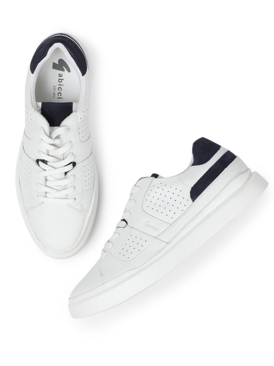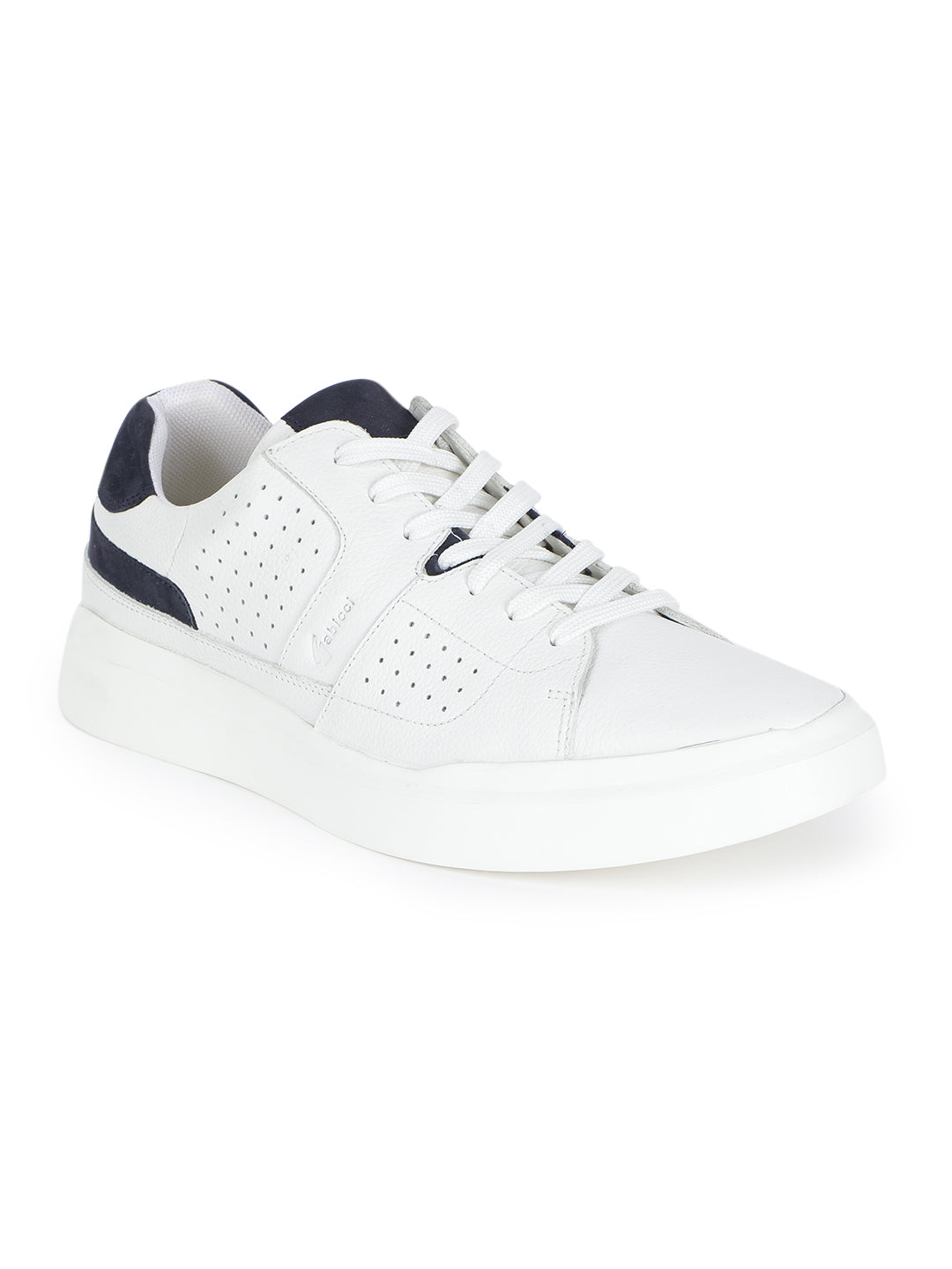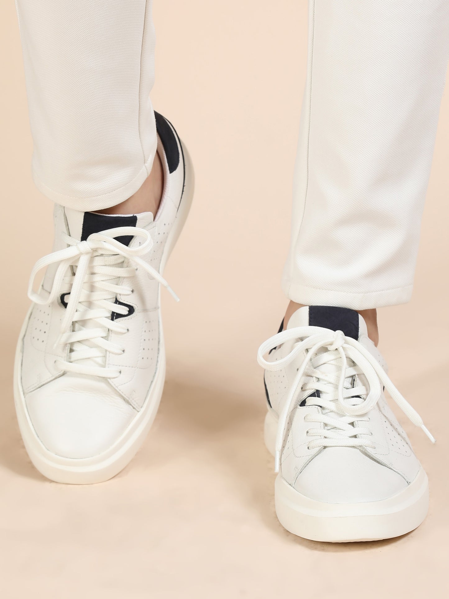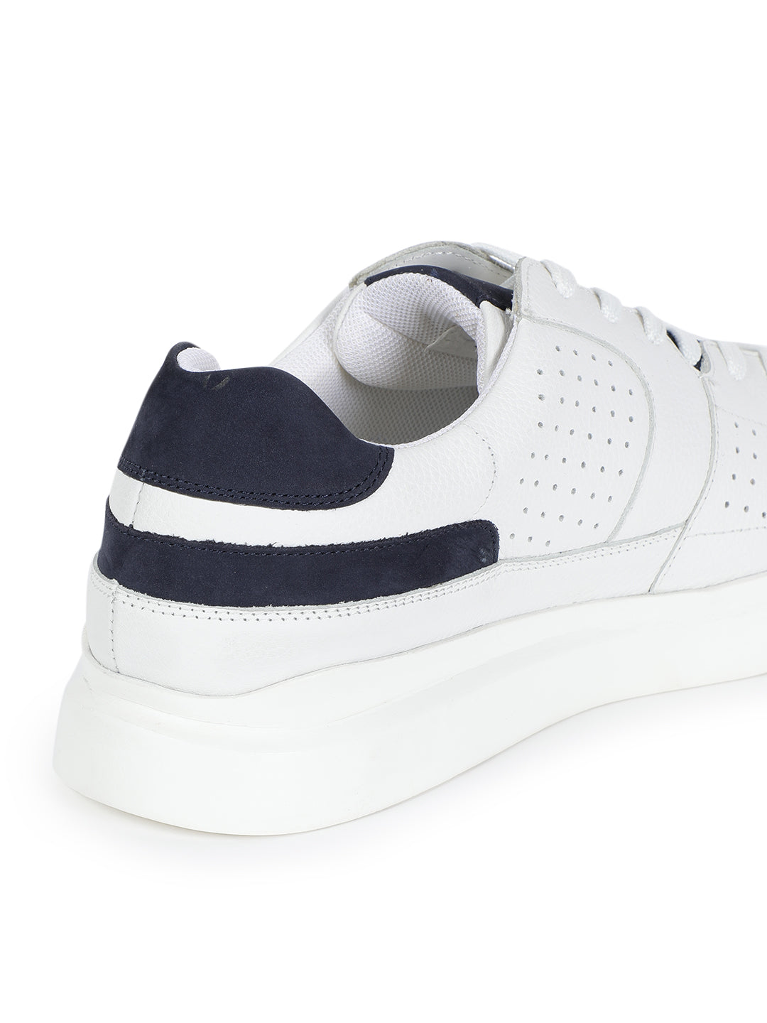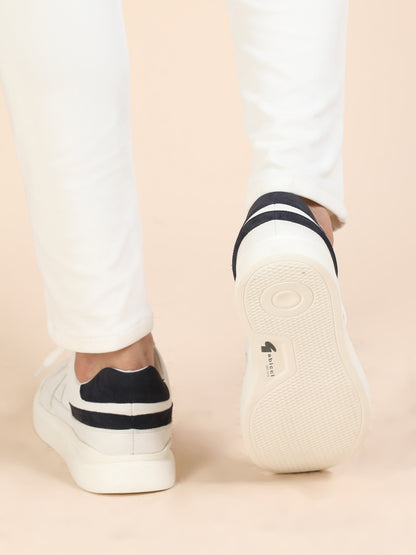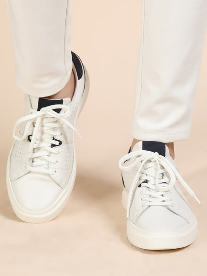 Upgrade your streetwear game with these ultra-cool white sneakers featuring navy accents. Designed for versatility and comfort, these lace-ups are crafted with a perforated upper for breathability, a plush cushioned insole, and a bold white sole for a modern edge. Whether you're heading to brunch, running errands, or chilling with friends, these kicks keep your style clean and comfortable all day long.