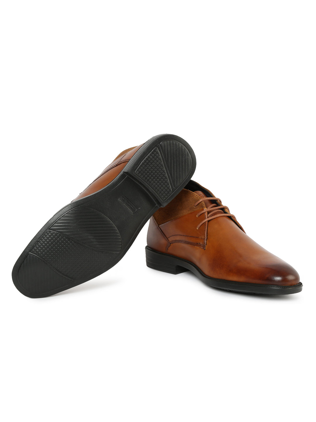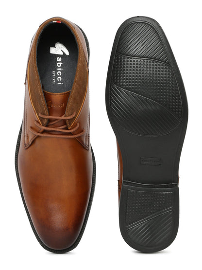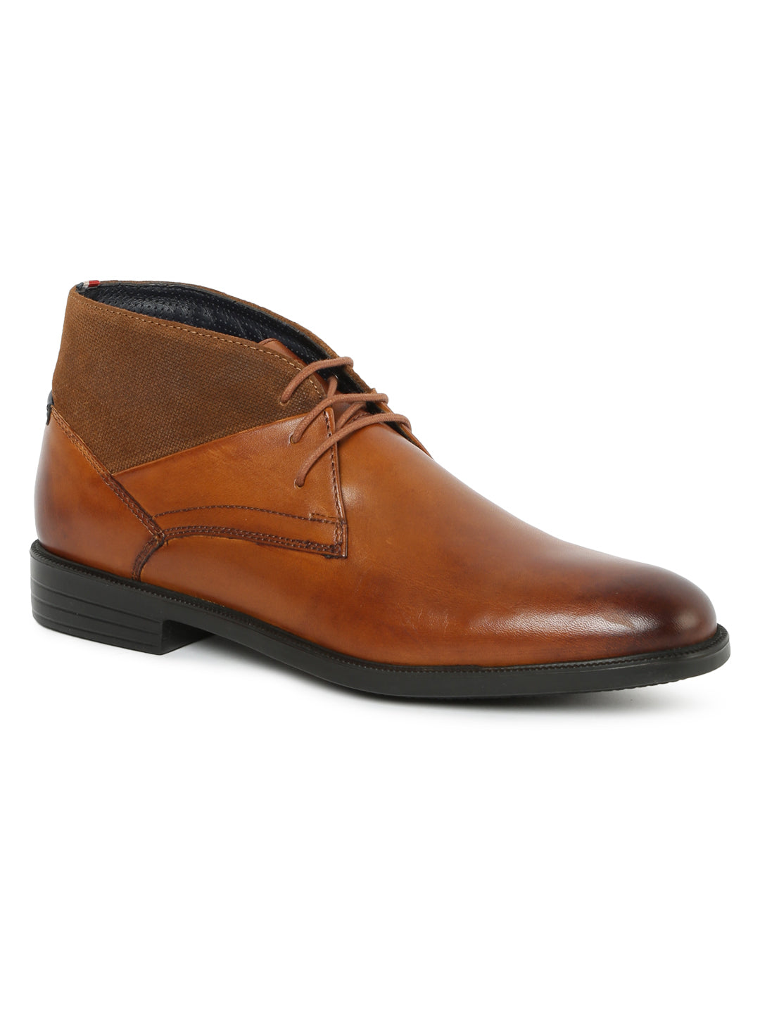 The Chukka Boot shoe is finished with smooth calf leather combined with a suede ankle quarter piece, suede. Tonal contour stitching and embossed logo on the tongue give finesse to this all-season semi-formal shoe.