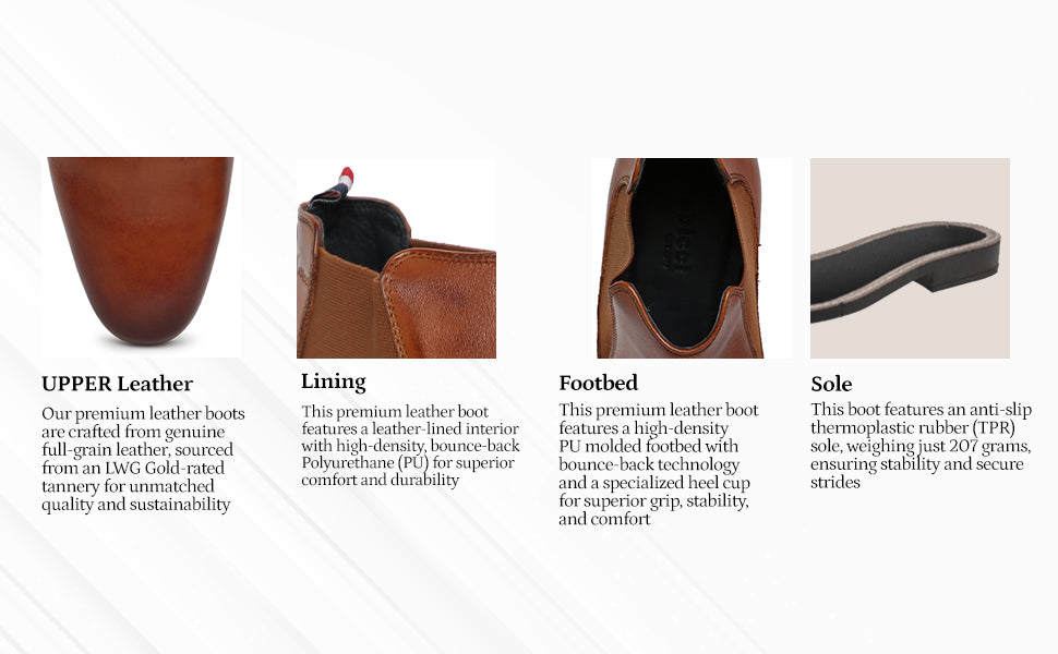 Our footwear is made from high-quality materials, including genuine leather, vegan leather, rubber soles, memory foam insoles, and breathable fabrics. Each product page lists the exact materials used.