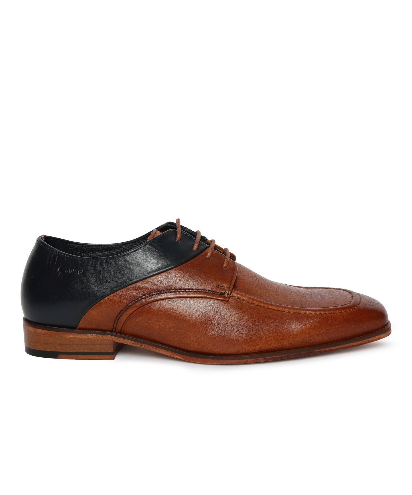 Introducing the Greenwich Shoes, a sophisticated choice for the modern gentleman. These four-eyelet lace-up shoes are crafted from premium waxed leather, offering a luxurious look and feel. The split two-tone combination upper, featuring burnishing details, provides a distinctive and stylish edge, while the apron toe adds a touch of elegance.
