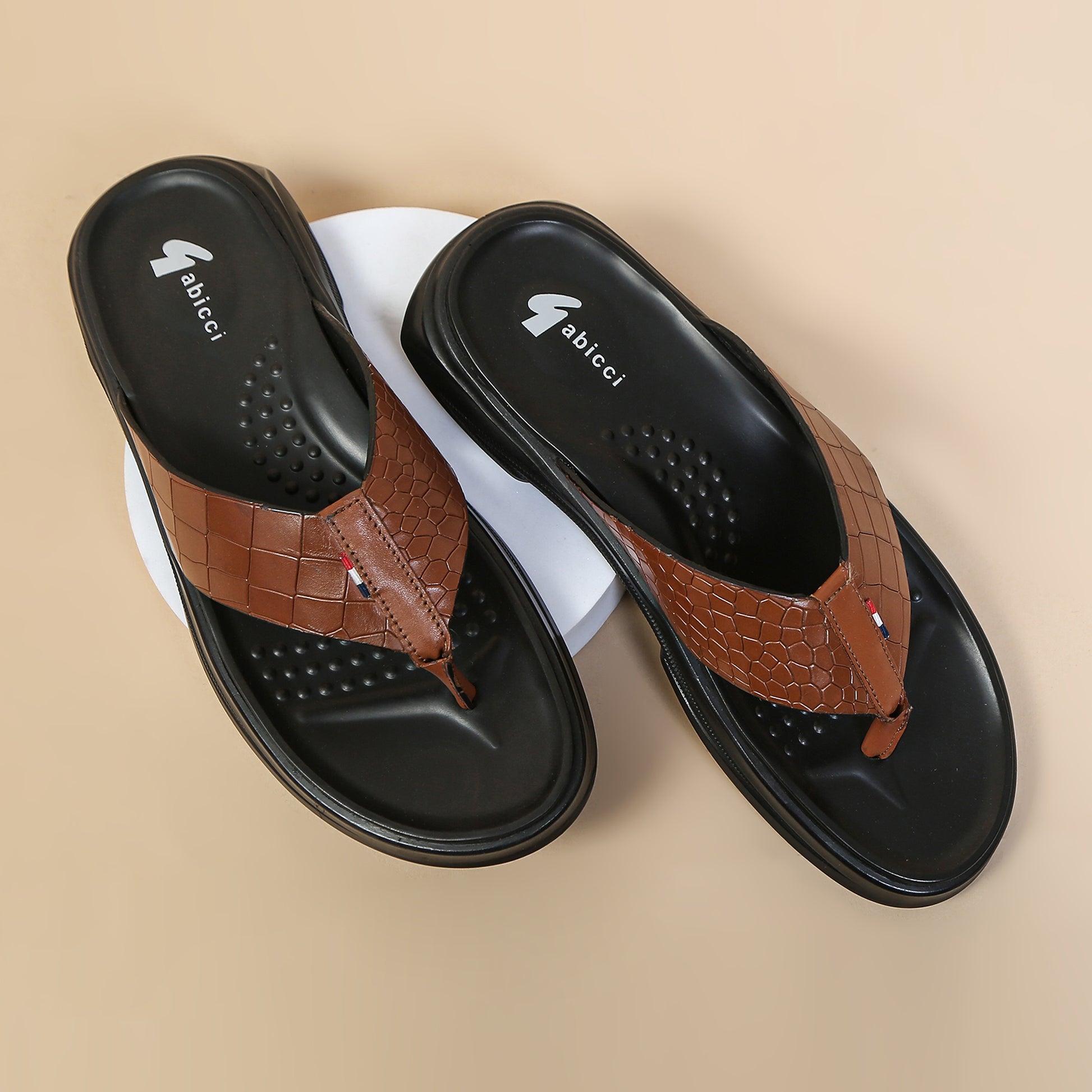 This pair is thoughtfully designed to exude luxury & comfort - the leather lining offers breathability and a soft touch feel. Say goodbye to color leaching, as our lining retains its elegance over time. PU footbed with arch support, toe grip, and strategically placed grip points ensures all-day comfort, , thanks to its plush composition. And the sole? A sturdy 12mm PU sole with grip patterns, promising durability and stability on any terrain.